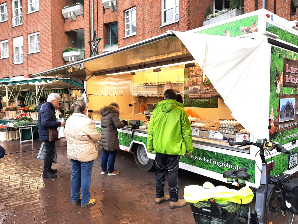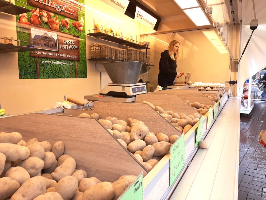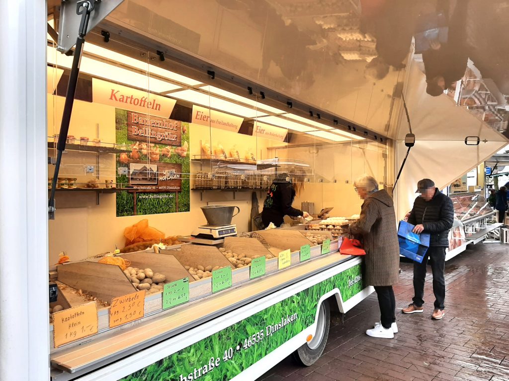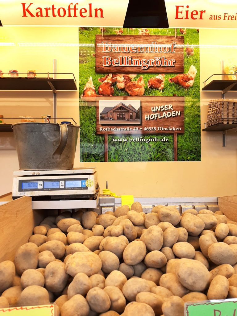 Als traditioneller Familienbetrieb helfen beim Bauernhof Bellingröhr schon in der 10. Generation alle Familienmitglieder mit und versorgen die Kunden mit frischer, selbst produzierter Ware. Auf den Wochenmärkten im niederrheinischen Dinslaken bekommt man die berühmten eigens angebauten Kartoffeln, Eier aus eigener Haltung und viele weitere Lebensmittel wie Obst, Säfte, Nudeln oder Honig.
