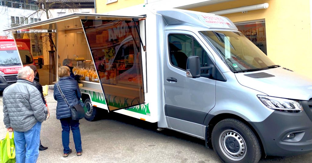 Jeden Freitag Morgen findet man auf dem Wochenmarkt Blaichbach im Allgäu nun den Mercedes unter den Verkaufsmobilen, und das im wahrsten Sinne des Wortes: