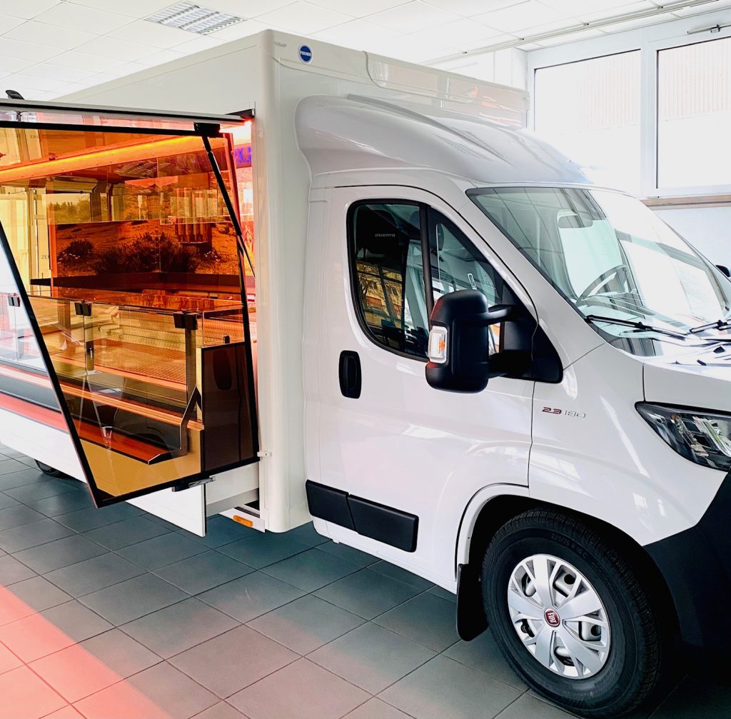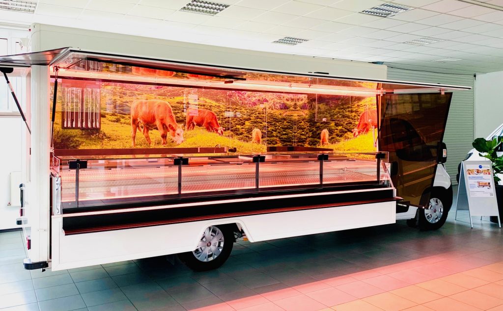 Modifikation der Ausstattung wie Regale, Werbetafeln, Wurstgehänge etc. gegen Aufpreis möglich.